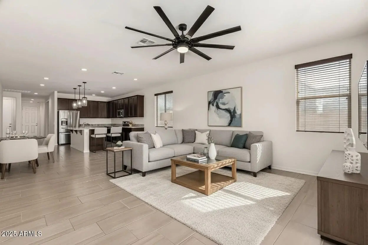 SELLER OFFERING RATE BUY DOWN! This beautiful move-in ready property provides the opportunity to own a new home without paying all the finishes that come with new construction! This thoughtfully designed residence offers modern comfort, versatile living spaces and a prime location- perfect for families, professionals or multi-gen households. Open-concept living with gourmet kitchen featuring quartz countertops, luxurious owner's suite with sizeable walk-ins in every room and with two versatile flex rooms—perfect for a home office, gym, or teen space. The backyard is fully finished with pavers and custom planters, ideal for relaxing or entertaining. Conveniently located near I-10 and Loop 303, with easy access to Estrella Mountain trails, top-rated schools, shopping, dining, etc