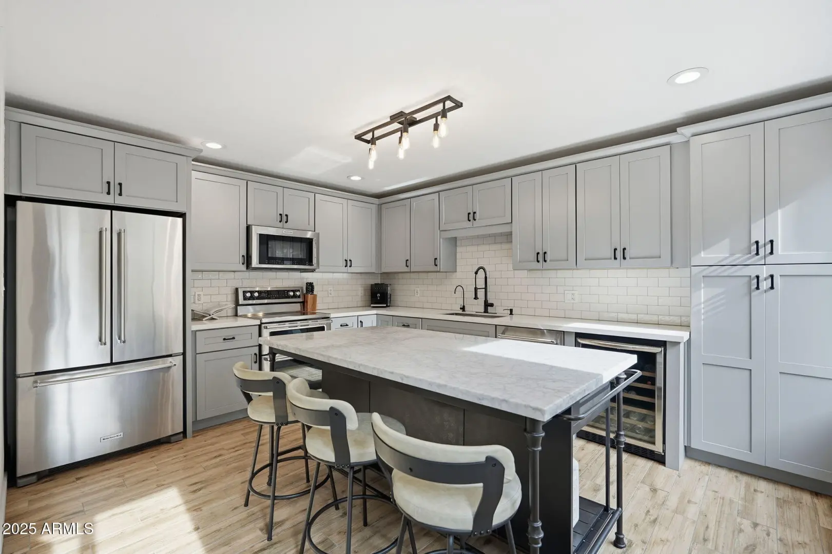 This beautifully updated townhome features two spacious primary suites with generous closet space and an updated bathroom, plus a stylish guest powder room on the main level. The main living area centers around a remodeled kitchen with quartz countertops, a statement marble island, updated cabinetry, and stainless steel appliances, ideal for everyday living and entertaining. Recent upgrades include flooring, smooth ceilings, modernized lighting/fixtures, dual-pane windows, new washer/dryer, and a kitchen drinking-water filtration system. Enjoy a private patio with additional storage and convenient access to the community pool. Ideally located in Old Town Scottsdale near Fashion Square, Top Dining, Golf, Spring Training, and Loop 101, this home blends comfort, style and location.